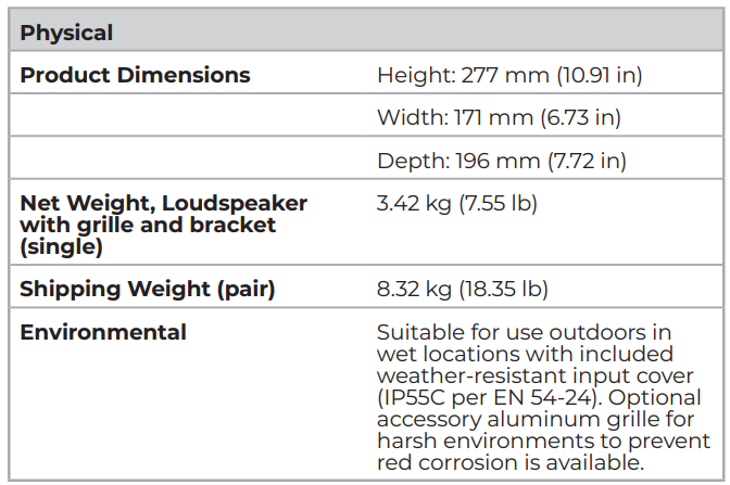 The FreeSpace FS4SE loudspeaker is designed to work with 18 AWG (0.8 mm2 ) to 14 AWG (2.1 mm2 ) size wire only.