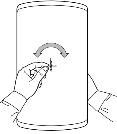 You can rotate the Bose logo to align with your loudspeaker orientation. With one hand, press the button on the back of the grille. Rotate the logo with the other hand. The logo can be rotated clockwise or counterclockwise.