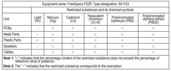 Bose-FreeSpace-FS2P-Pendant-Loudspeaker-Fig-12Taiwan Restriction of Hazardous Substances Table