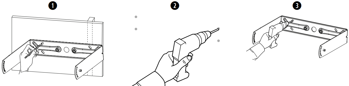 - Drill four holes (sized for appropriate fasteners) into the wall.
