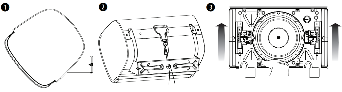 Place the grille over the front of the loudspeaker and push it firmly until it snaps into place.