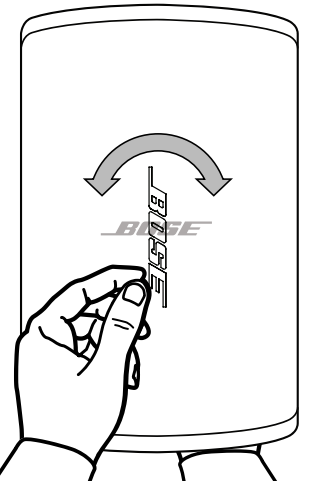You can rotate the Bose logo to align with your loudspeaker orientation. With one hand, press the button on the back of the grille. Rotate the logo with the other hand. The logo can be rotated clockwise or counterclockwise.
