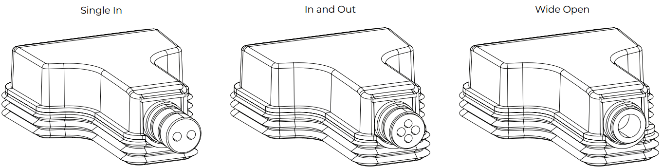 The weather-resistant input cover is designed for three different wiring scenarios (see above). To change the