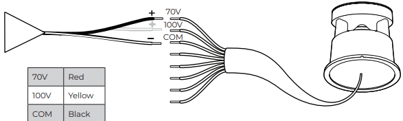 1. Connect the appropriate wire for your desired voltage from the loudspeaker to the positive (+) terminal on your amplifier cable.