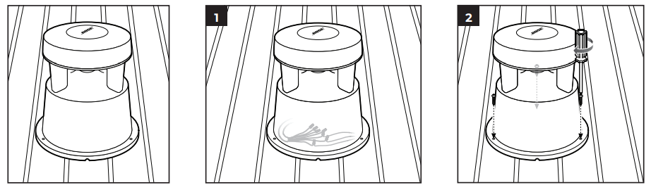 2. Secure the loudspeaker to the surface with three #10 or M4 mounting screws (not included).