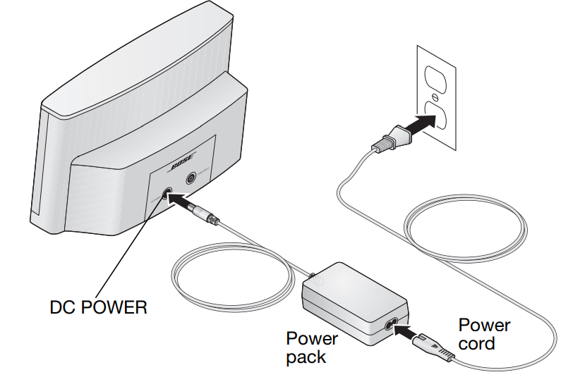 - Plug the power pack into the DC POWER connector on the rear of the system.