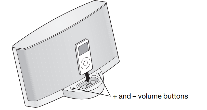 - Set your iPod/iPhone to play, then firmly insert it into the dock. The system begins to play immediately.
