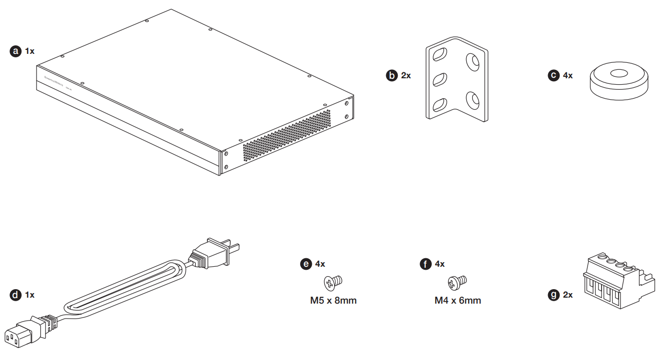- 4 x Rack-mount ear screws (M5 x 8mm)