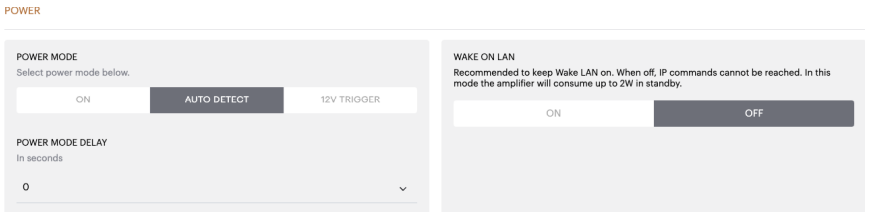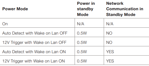 - Three power mode control options – on, auto detect, or 12V trigger.