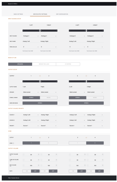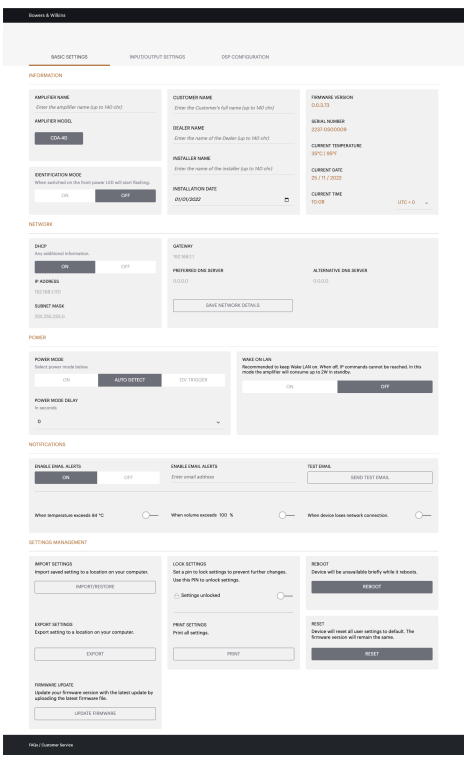 In the Basic Settings tab, users can edit general amplifier settings. The following section will take you through each of the functions on this tab.