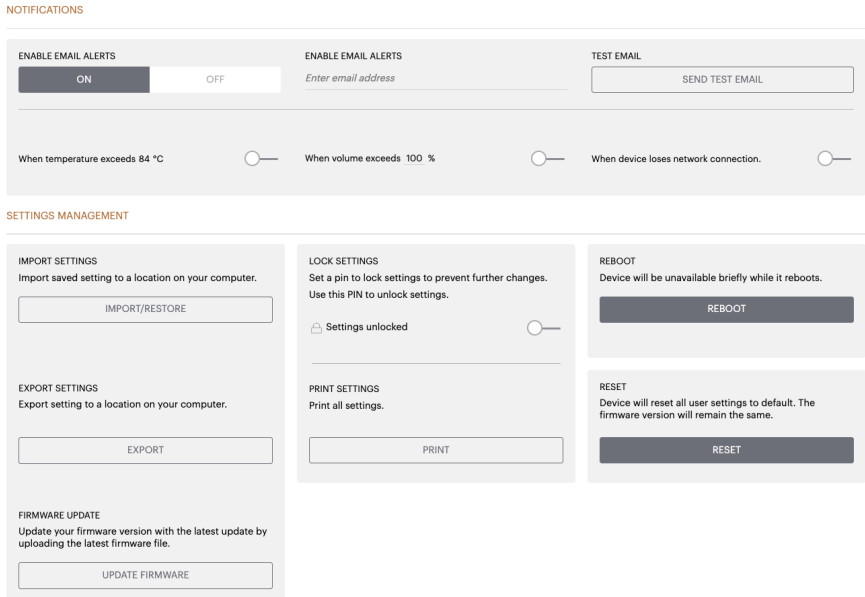 - Using the factory reset can erase all settings and revert the amplifier to the factory flashed firmware.