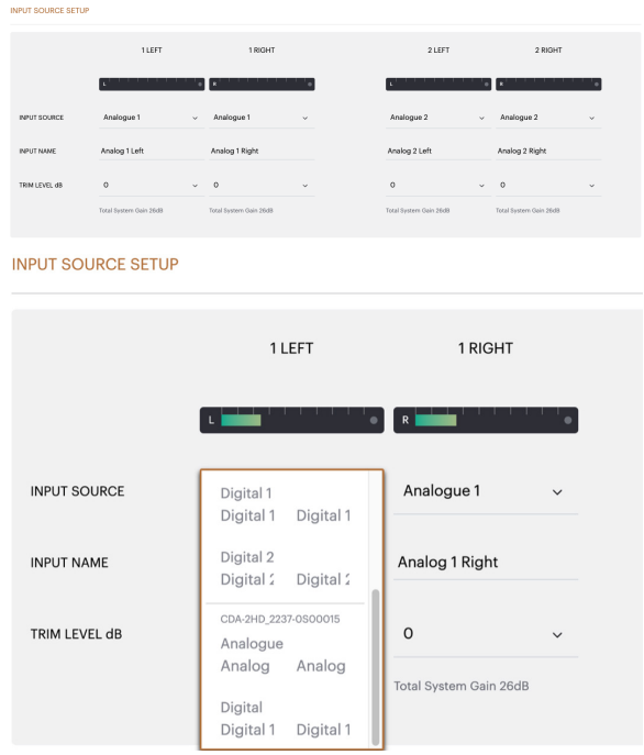 - CDA-4D has two available input sources. This allows the user to define which input source to use.