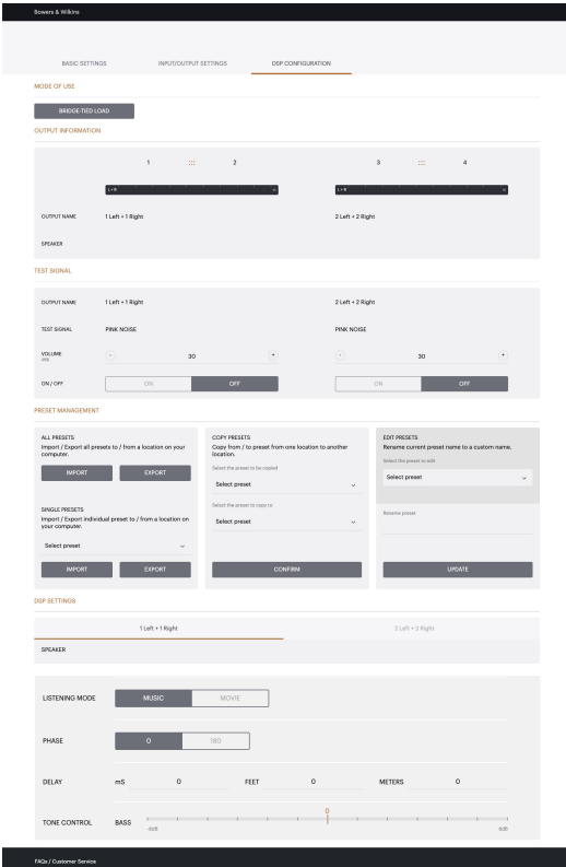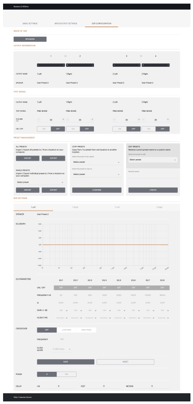 - In the DSP Configuration tab, you can make fine adjustments like Phase, Delay, ay a Tone Control on Bowers & Wilkins products.