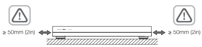 - Ensure that, once positioned, the amplifier is well ventilated and that the ventilation apertures are not obstructed. If the system is taken out of use for a long period, disconnect the amplifier from the mains power supply.