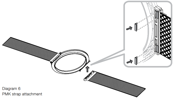 To use a PMK, first attach one strap to each side of the moulding using the plastic clips.