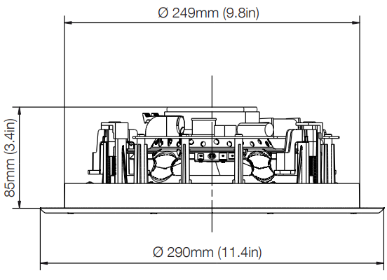 The CI 300 is a two-way in-ceiling speaker with a tweeter for high frequencies and a dedicated woofer for low and mid frequencies.