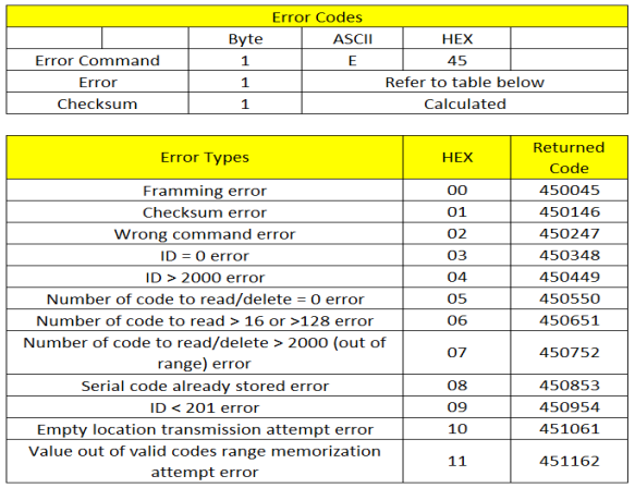 CODE STRUCTURE AND ADDITIONAL CODES The code structure for transmit codes is as listed below