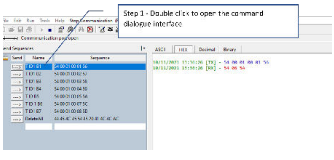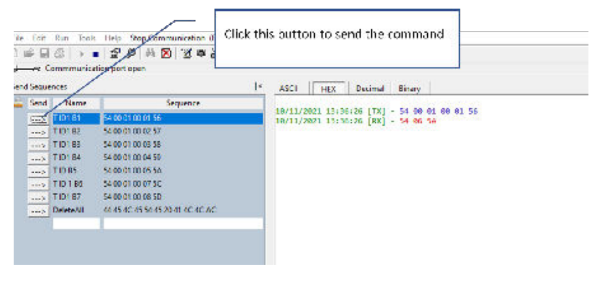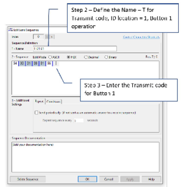 Setting up the button codes in Docklight. The Smart-Heat Link device can operate up to 50 controllers using pre-program codes.