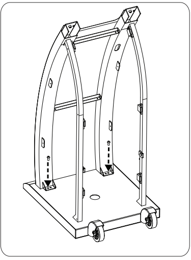- Fasten rear arms to base using 2 x M8 20mm screws and the supplied M8 Hex Key.