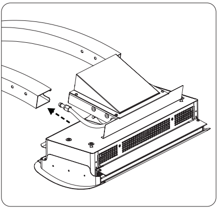 - Secure the deflector to the heater by loosening the two screws and securing the brackets underneath the washers. Re-tighten screws to the original position using screw screwdriver.
