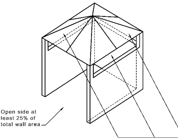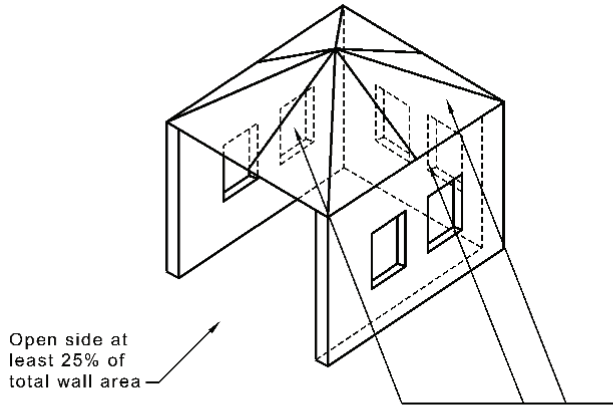 - At least 25% of the total wall area is completely open (ref. Appendix A, Example 4), and