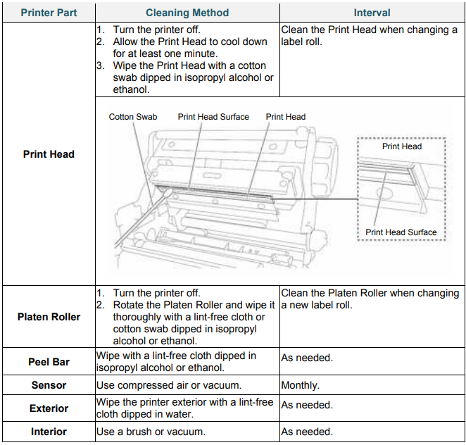 We recommend cleaning your printer on a regular basis to maintain its correct performance.Recommended cleaning materials: