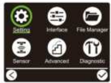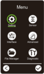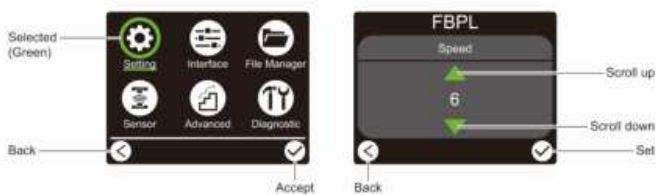 To select an option on the Main Menu, use the Navigation buttons to browse the options and then press the button under the icon.