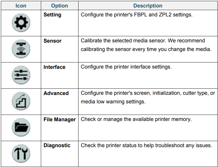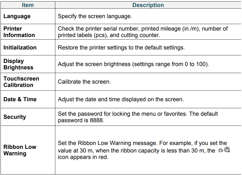Use the Main Menu options to configure various printer settings without connecting the printer to a computer.