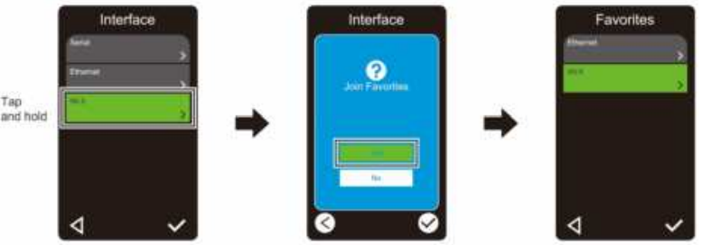 Add frequently used Main Menu options to “Favorites” for quick access. To display the “Favorites” list, tap the Favorites icon
