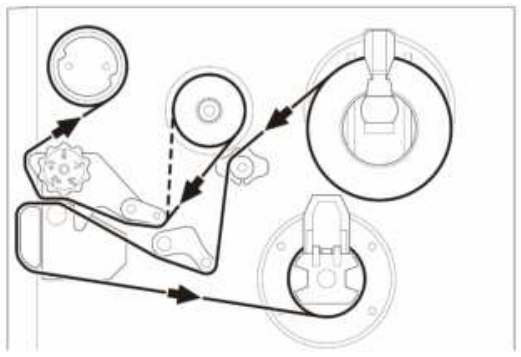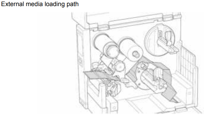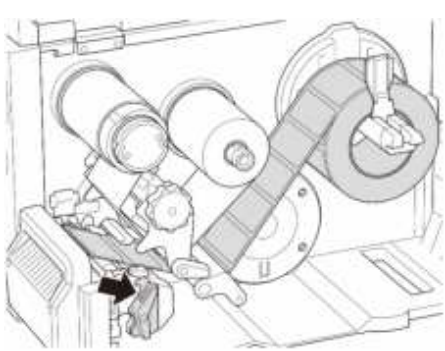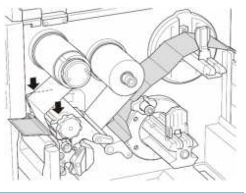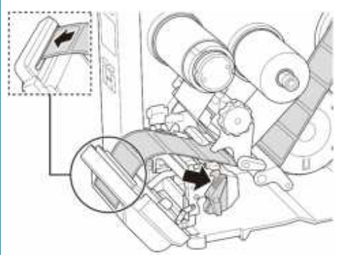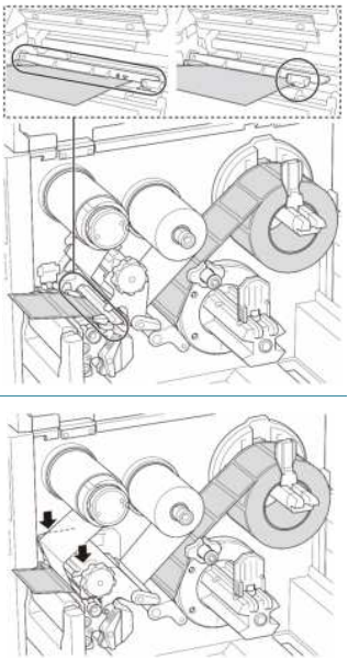 - Push the Print Head Release Lever and thread the label through the Damper, Media Sensor, and Front Label Guide to install the media.