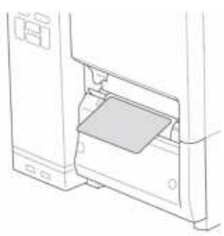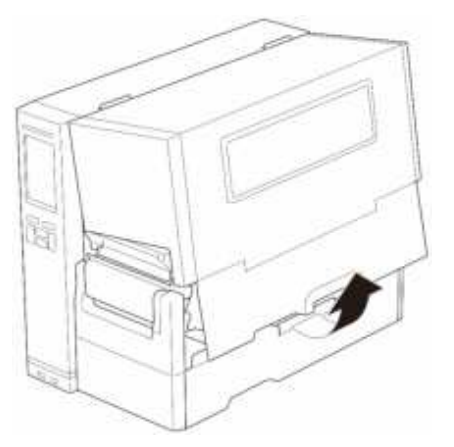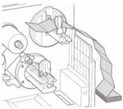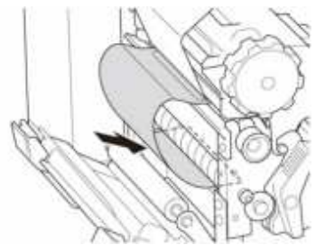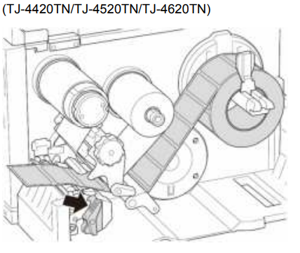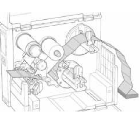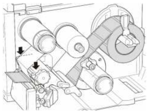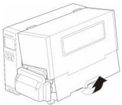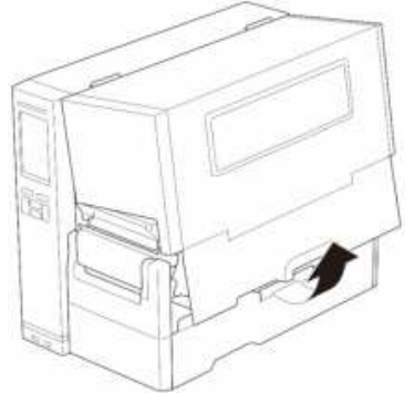 - Turn the Print Head Release Lever, Label Guide Release Lever, and Peel-Off Kit, and pull approximately 650 mm of the label roll through the Media Output Slot.