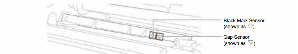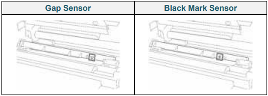 The Gap Sensor (transmissive sensor) detects the beginning of the label,l and the printer feeds the label to the correct position. The Black Mark Sensor (reflective sensor) detects the mark, and the printer feeds the media to the correct position.