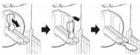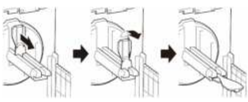 - Slide the Label Roll Guard horizontally to the end of the Label Supply Spindle, and then flip down the Label Roll Guard.