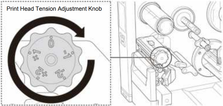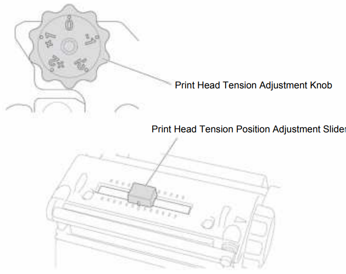 - Move the Media Sensor by adjusting the Media Sensor Position Adjustment Knob. Make sure the position of the Gap or Black Mark Sensor matches the position of the Gap/Black Mark on the label roll.