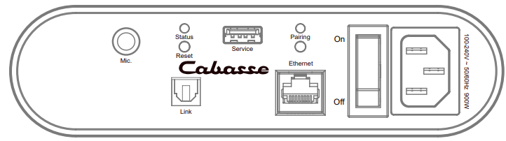 This input is only useful for use in Wi-Fi / Ethernet mode (paragraphs 4,5,6 below). Connect a USB stick or hard drive containing audio files to this input to automatically network them. Use the supplied USB adapter if needed. All files in formats recognized by the DLNA server included in the speaker are then listed in the Stream Audio Control application and can be read by all Cabasse Stream players connected to the same network. The speaker micro-USB socket has a 5V – 1A DC power supply for use with a portable hard drive without an external power supply.
