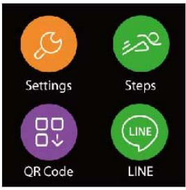 WeChat: Tap this icon to chat with the APP, hold to talk and send a voice clip, or tap on the + to open the camera & take a photo. Tap on the V to send the photo to the APP. Note that the watch cannot send text messages to the APP, while the APP can send text messages to the watch. Text must be initiated on the APP in WeChat