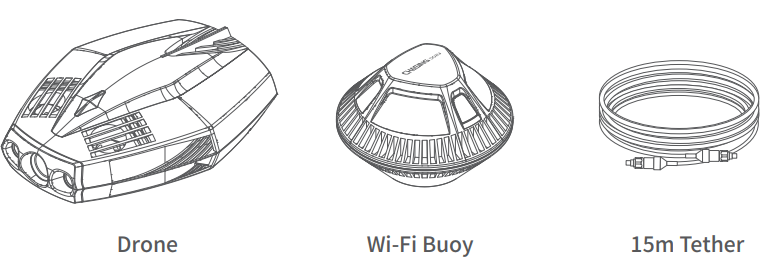 Booting UpOnce the Dory and the Wi-Fi buoy are connected, the LED lights on the drone will flash,,h and you will hear two self-test sounds. A flashing green light will indicate that both the Dory and Wi-Fi buoy are powered on