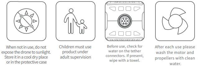 Connect the drone and the Wi-Fi Buoy. Insert one end of the tether into the drone and the other end into the Wi-Fi buoy. Securely hand-tighten both couplingbolts.