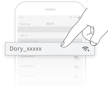 Wi-Fi Connection: On your mobile device, go to Wi-Fi settings. Click“Dory _xxxxx” network and enterthe password 12345678.