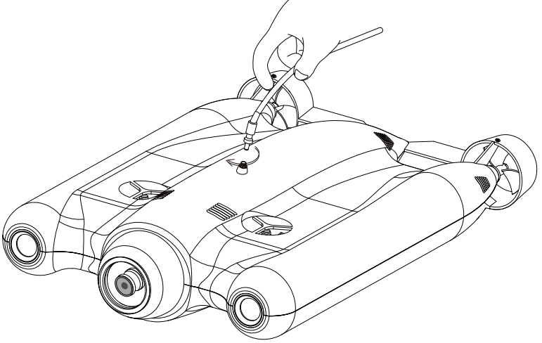 3. Connect the Drone and the Buoy: Plug in the buoy connector with thedrone, then screw the connector clockwise.CHASING-GLADIUS-Pro-4K-Underwater-Drone-figure-12