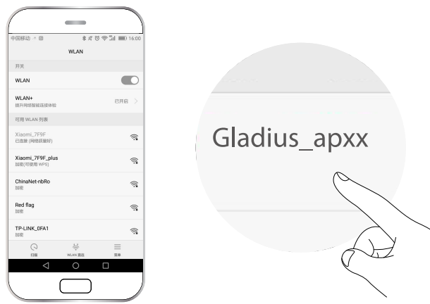 6. WI-FI Connection: Open App, click Wi-Fi icon, search “Gladius_2.4G_apXX” or”Gladi- us_5G_apXX.Password: 12345678. Remarks: Gladius is built with a dual-band 2.4G +5.8G Wi-Fi module, can choose any signal access to log in.CHASING-GLADIUS-Pro-4K-Underwater-Drone-figure-15