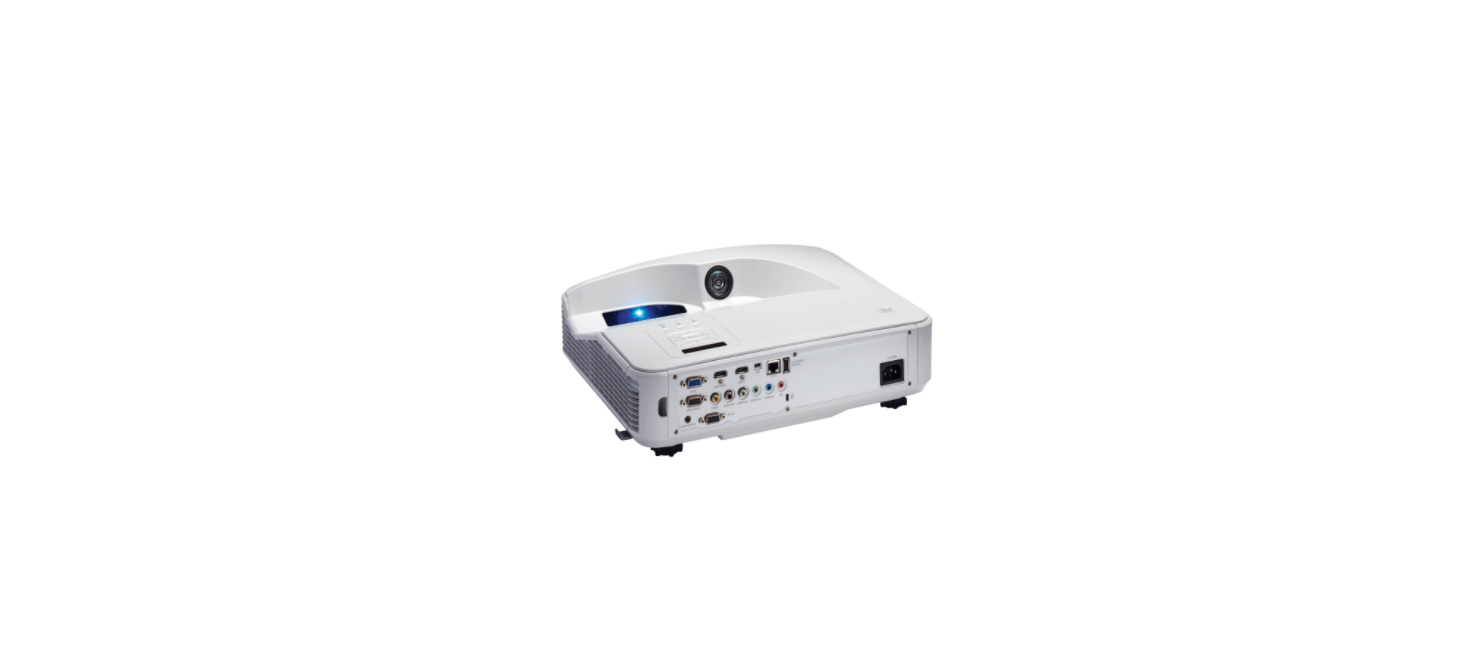 Keep the projector lens as perpendicular to the screen as possible, even if significantly above the screen center. When a particularly short throw distance combines with a wide screen, you may have to forfeit some aim and stay more perpendicular to the screen. In such cases, some lens offset can reduce the keystone distortion.