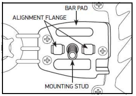 - Place the guide bar on the bar pad by sliding the bar slot over the alignment flange, as shown, with the mounting stud inserted through the hole in the chain tensioning gear.