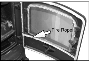 Check the rope around the door and glass. If the rope is becoming detached, replace it with a rope approved for this purpose. Inspect the fireproof door seal where fitted, to ensure there is an effective seal around the door, and re-fix it if loose using stove rope adhesive. If in poor condition, it should be replaced.