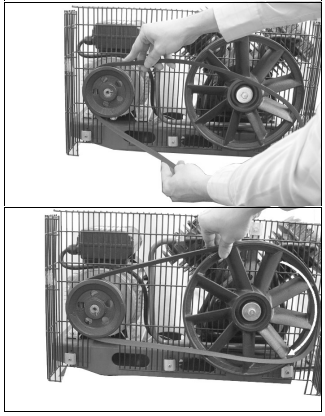 - Rotate the large belt wheel by hand in a clockwise direction whilst guiding the belt onto it.