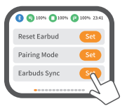 When an earbud is lost, put the replacement new earbud and the old earbud into the charging case, slide to the left or right on the operation interface to click Auxiliary → Earbuds Sync to complete pairing.