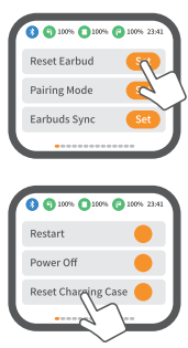 - Using a charging case, put both earbuds into the charging case, slide to the left or right on the operation interface to click [Auxiliary] + [Reset Earbud] to complete the operation.