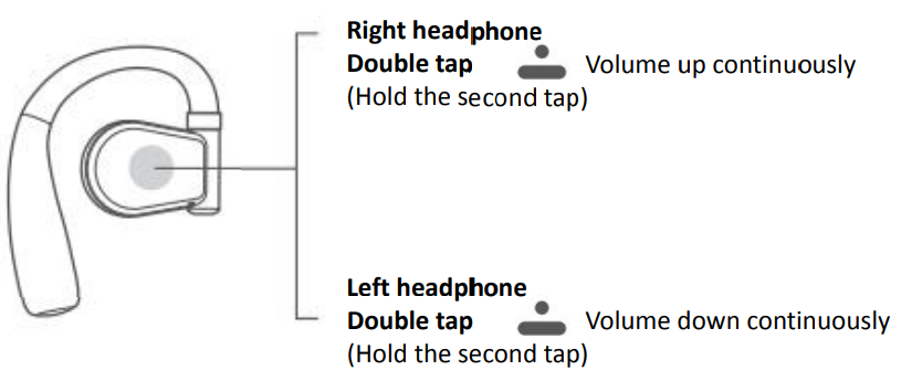 • Tap the touchpad of the right headphone twice, holding the second tap; the volume will keep increasing.