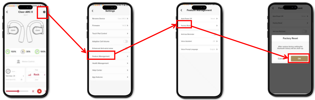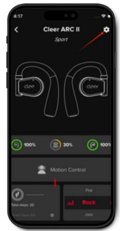 2. Tap the [Setting] icon at the top right corner.Cleer-ARC-II-True-Wireless-Open-Ear-Earbuds-Figure-20