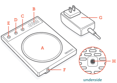 - Place a heat-safe cup with a liquid that weighs at least 10.4 oz / 295 g on the heating plate to activate the gravity induction switch (see next section). Then, tap.